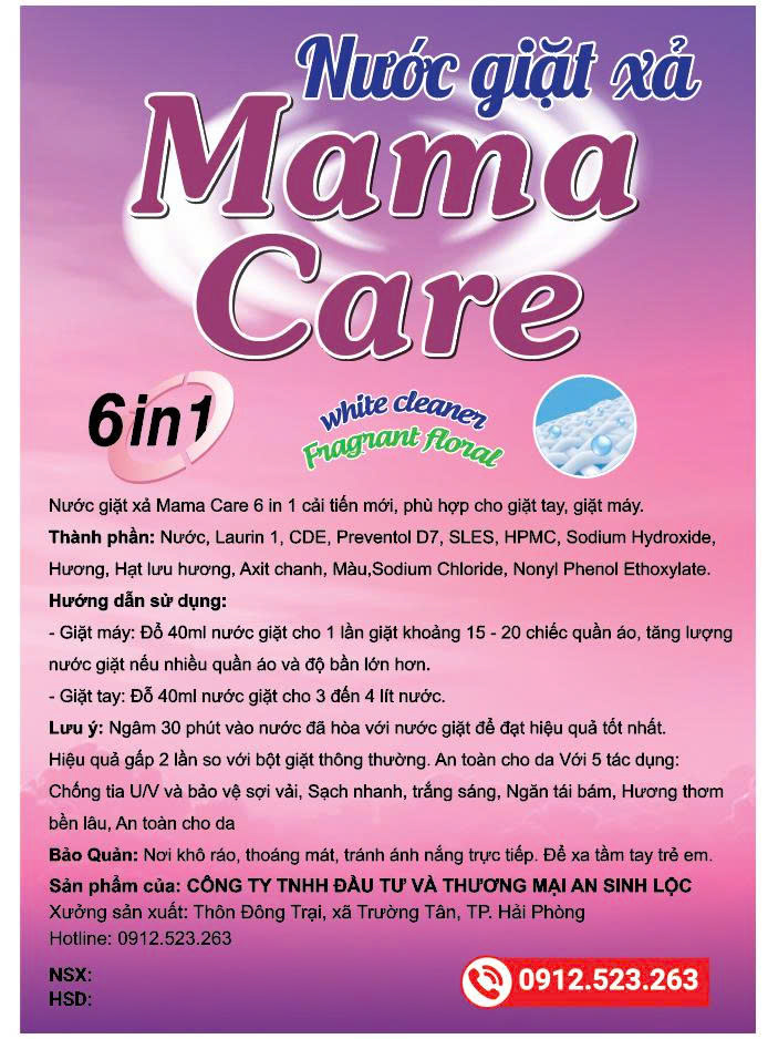Nước giặt xả Mama Care 6 in 1 cải tiến mới, phù hợp cho giặt tay, giặt máy.
