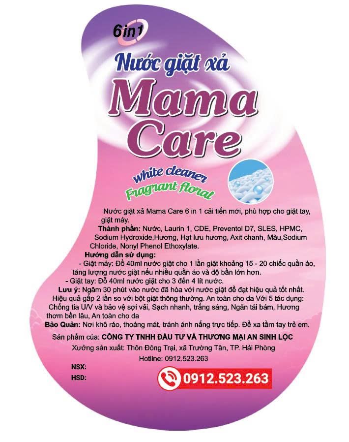 Nước giặt xả Mama Care 6 in 1 cải tiến mới, phù hợp cho giặt tay, giặt máy.